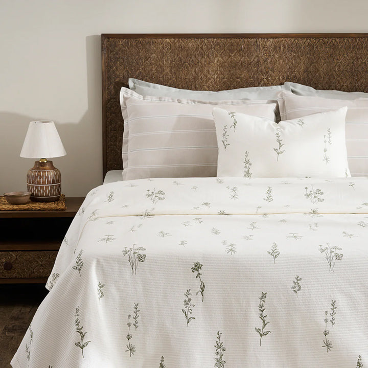 Delicate wildflower sketches come to life on soft cord rib fabric, creating a bed set inspired by the intricate beauty of nature. The illustrations gently contrast with the neutral backdrop, creating a serene and calming aesthetic for your bedroom.